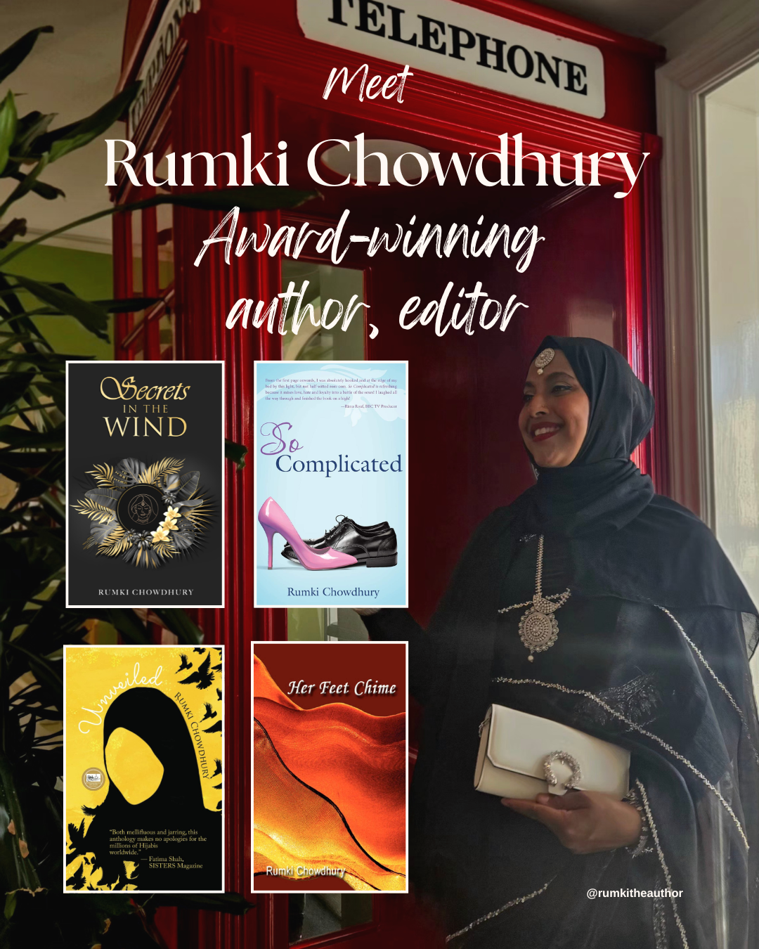 Rumki Chowdhury's YA novel/thriller, Secrets in the Wind, was released on February 15th, 2023 by Djarabi Kitabs Publishing! It won "Distinguished Favorite" for Multicultural Fiction at The NYC Big Book Awards, "Runner-Up 2023" for YA Fiction at The New York Book Festival, "Honorable Mention 2023" for YA Fiction at The London Book Festival, Bronze for Multicultural YA Fiction at The Independent Publisher's Book Awards, "Finalist" in the Teenage Category at the UK Wishing Shelf Awards 2023, "Distinguished Favorite" for Multicultural Fiction at The Independent Press Awards 2025! "Secrets in the Wind" has also won Fofky's "Reader's Choice" Awards for "Best Thriller" and has made it to "Finalist" for the Strange Incorporated Podcast 2023 Book Awards!